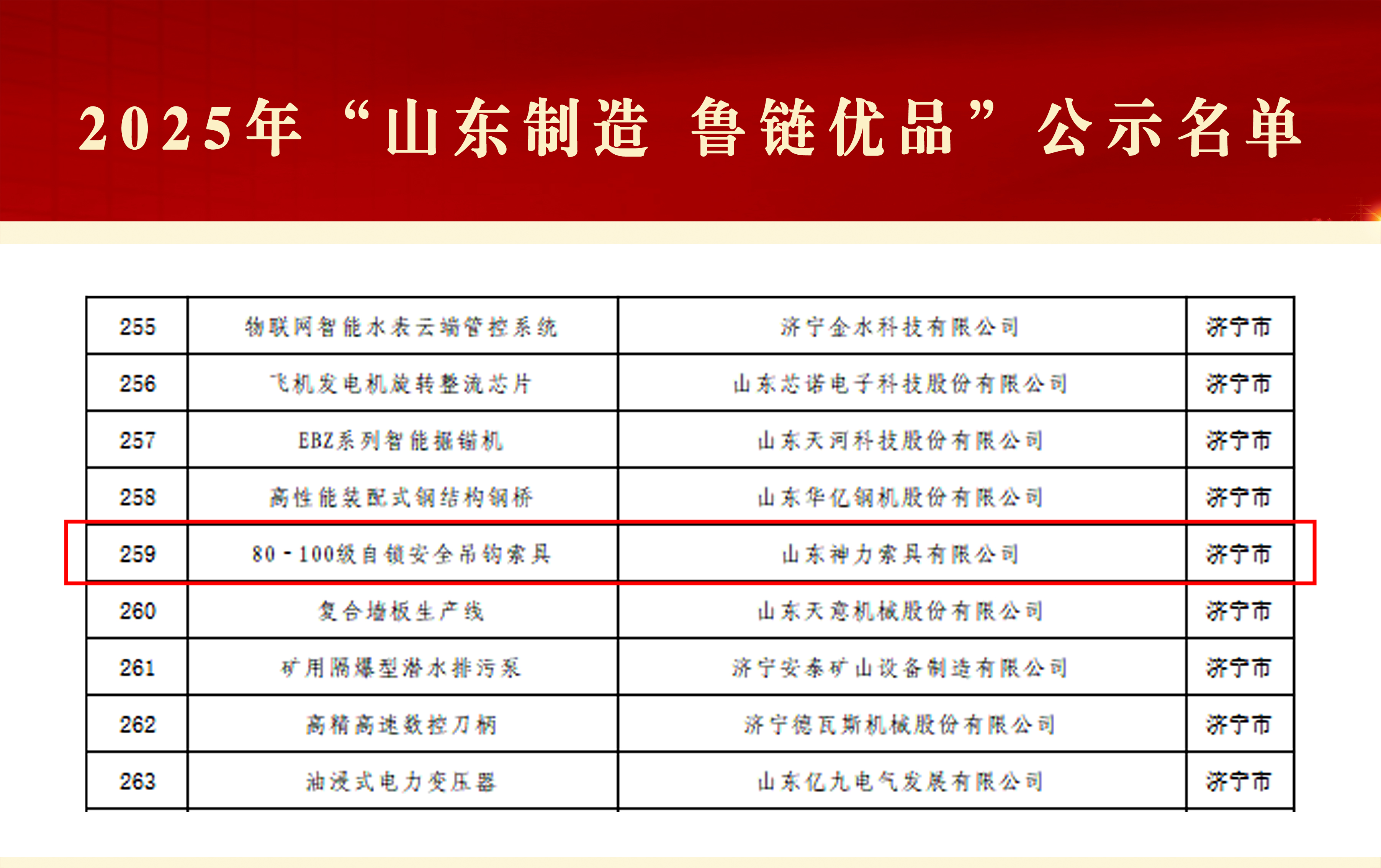 近日,2025年“山东制造·鲁链优品”首批名单正式公示,山东神力索具有限公司凭借卓越的产品质量与品牌影响力成功入选,成为山东省制造业高质量发展的代表性企业之一。